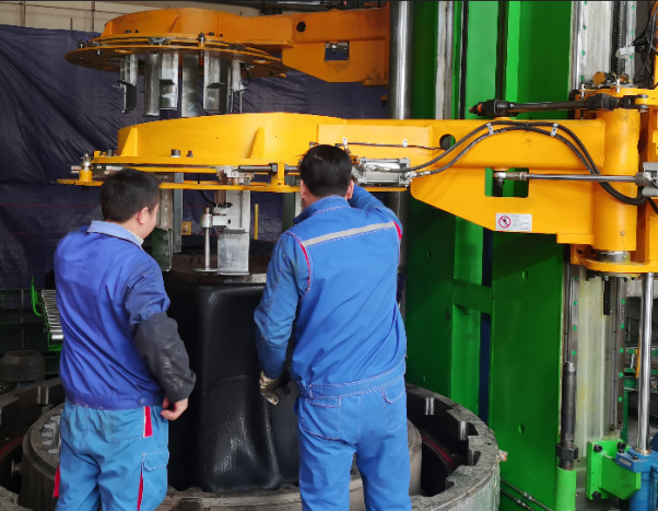該規格硫化機的快速換模裝置實(shí)現了硫化輪胎模具的更換時(shí)間由原來(lái)4h縮短至50min,人工成本降低,能源利用率高,且該規格硫化機可廣泛用于硫化22.5"-42"工程輪胎、農業(yè)輪胎等,為打造智能、綠色、靈活、高效的數字化輪胎生產(chǎn)線(xiàn)提供了強有力的設備保障。此外,該規格硫化機能直接對接自動(dòng)物流系統,并實(shí)現了自動(dòng)、快速無(wú)極調模,蒸汽管路采用集成閥組形式,比傳統蒸汽管路節能10%以上?! ?/div>
